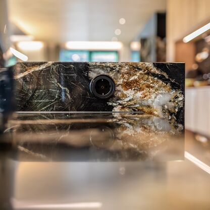 Ein dunkler Belvedere-Granit mit kontrastreicher Aderung. ein Statement von zeitloser Eleganz.