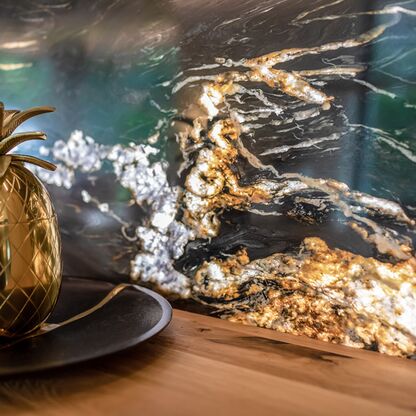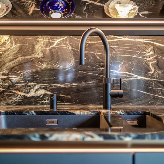 Black & Gold. dunkler Granit als Statement für die Küche.