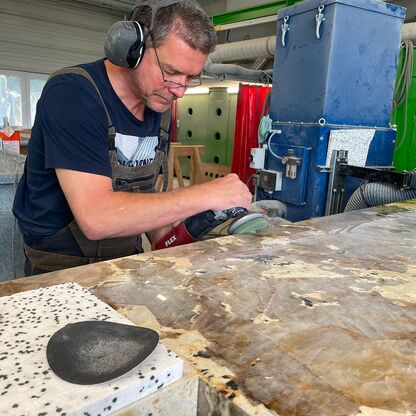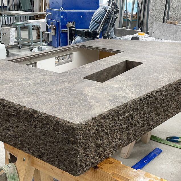 Neben traditionellem Handwerk setzen wir auf modernste Fertigungstechnologien. Digitale Planung, CNC-gesteuerte Bearbeitung und präzise Sägetechnik ermöglichen millimetergenaue Ergebnisse und wiederholbare Qualität. So lassen sich selbst komplexe Formen und großformatige Flächen sauber und effizient umsetzen. Technik und Handarbeit ergänzen sich dabei: Maschinen liefern exakte Maße, die Veredelung und das Gespür für den Stein kommen von uns. Das Ergebnis sind Oberflächen und Kanten, die in Funktion und Ausdruck gleichermaßen überzeugen.