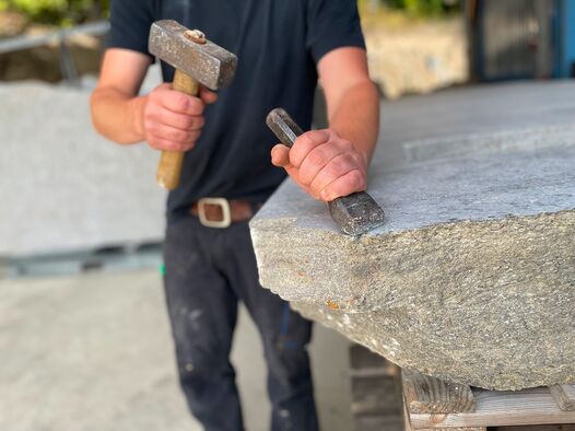 Steinmetzkunst bedeutet für uns, den Charakter des Materials sichtbar zu machen. Viele Arbeitsschritte erledigen wir noch immer von Hand – mit Hammer, Meißel und geschultem Auge. So entstehen Details, die keine Maschine ersetzen kann: präzise Kanten, harmonische Übergänge und Oberflächen mit Persönlichkeit. Jede Bearbeitung ist ein Stück gelebte Tradition, weitergeführt in dritter Generation.